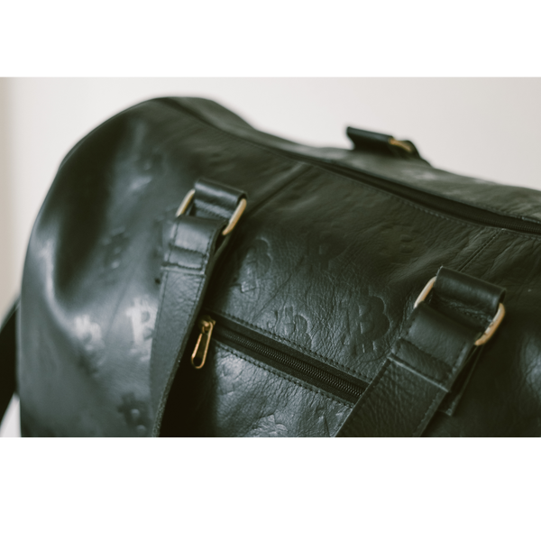 Show off your crypto status with this stunning leather duffle bag. An embossed Bitcoin symbol on the side. This subtle yet sleek bag is everything you need. 5 pockets total, two zip pockets one on the inside and one outside, two outside pockets for easy access, and a laptop sleeve on the inside.